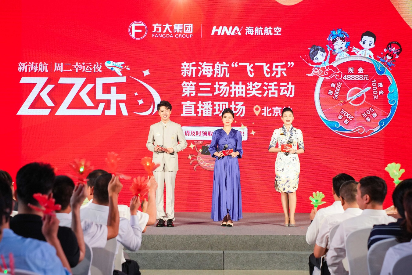 8月13日,新海航“飞飞乐”周二走运夜现金抽奖活动在海航航空集团北京基地举办。此次北京站现金抽奖是新海航该项旅客回馈活动的第三场,也是该活动全国巡回直播走出海南的首站首场。当晚,活动又一次抽出了3000余名中奖旅客。